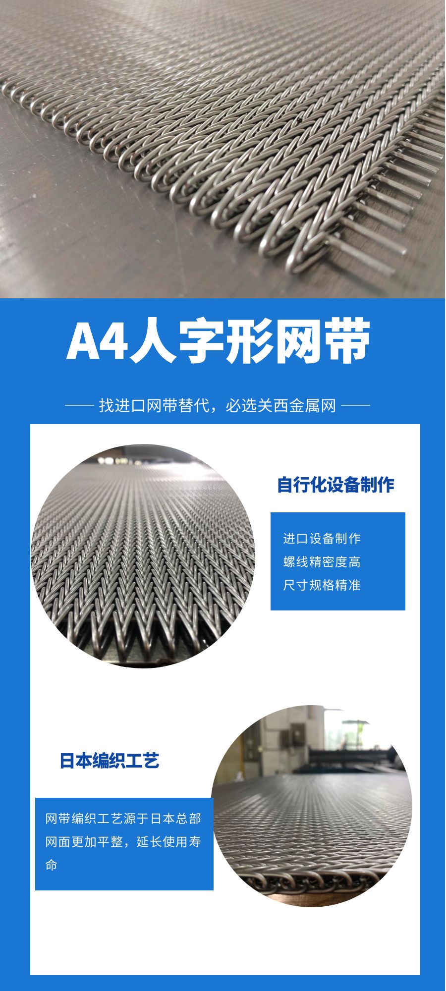 源自日本臺灣的先進網帶生產工藝,同時堅持自主研發,結合現代工業需求,具有等商子焊、網帶去油脂處理、扁線編織等多種特殊工藝。 | ![]() |